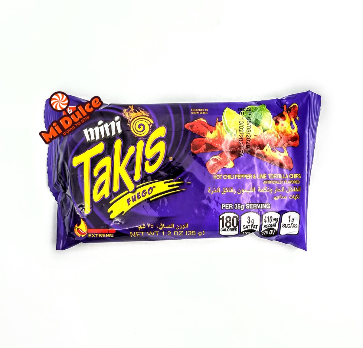 חטיף טאקיס מקסיקני ,בטעם צ'ילי ליים - חריף , אריזה אישית (35 גרם)